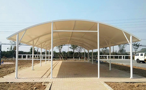 北京張拉膜結構車棚同時也是一種索膜結構,是鋼結構和膜材對的一種完美的結合,來形成的結構,詳情咨詢北京裕永和膜結構公司;張拉膜結構作為新的建筑形式于本世紀五十年代在國際上開始出現(xiàn),至今已有六十多年的歷史,特別是到了七十年代以后,膜結構的應用得到了迅速發(fā)展。張拉膜結構的出現(xiàn)為建筑師們提供了超出傳統(tǒng)建筑模式以外的新選擇。張拉膜結構一改傳統(tǒng)建筑材料而使用膜材,是依靠膜自身的張拉應力與支撐桿和拉索共同構成機構體系;使用膜材的重量只有傳統(tǒng)建筑的三十分之一重。而且膜結構可以從根本上克服傳統(tǒng)結構在大跨度(無支撐)建筑上實現(xiàn)時所遇到的困難,可創(chuàng)造無遮擋的可視空間。其外觀自由輕巧、阻燃、制作簡易、安裝快捷